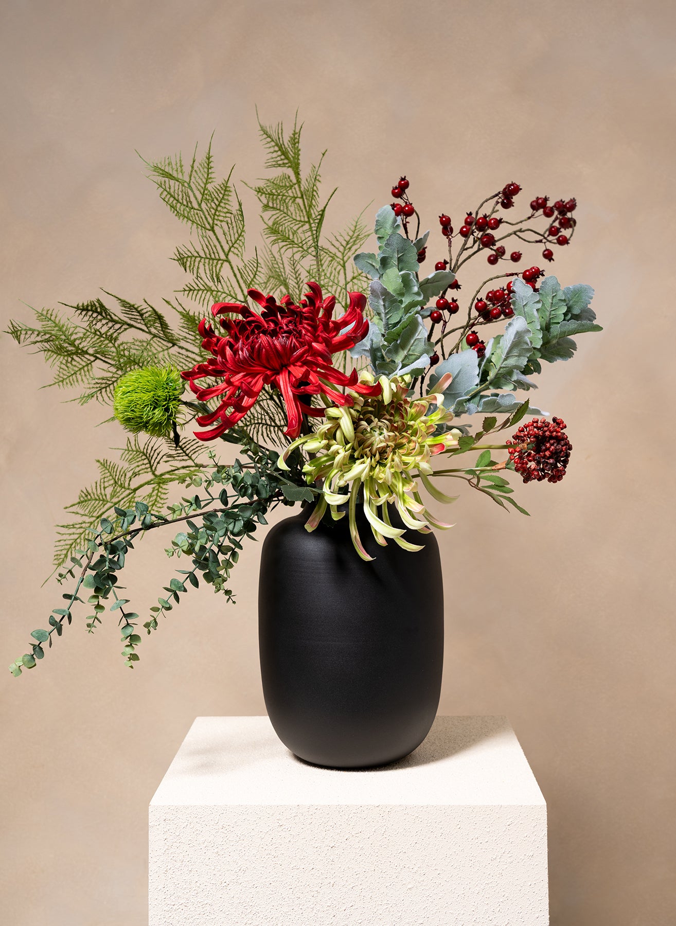 Enthält u.a. Chrysantheme, Beeren und Eukalyptus.