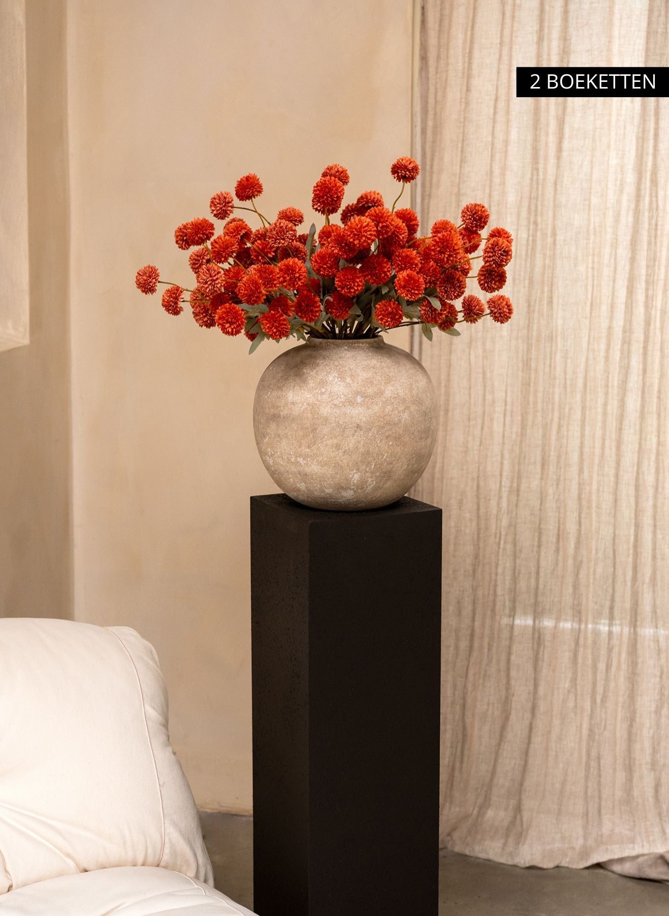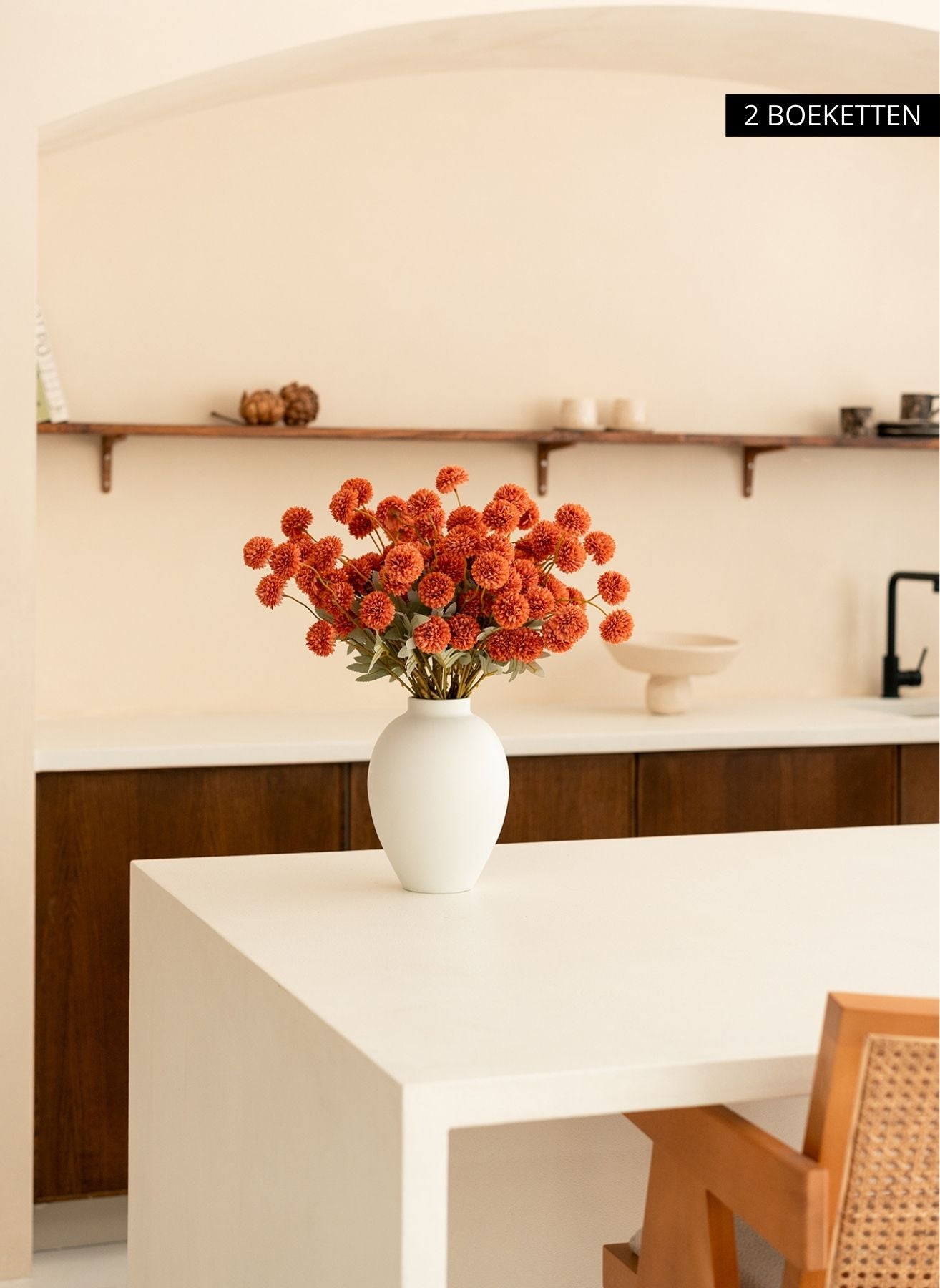 Unsere Kiku-Blumen bringen Tiefe und Farbe in dein Interieur und behalten das ganze Jahr über ihre perfekte Form – ohne Wasser, ohne Pflege.