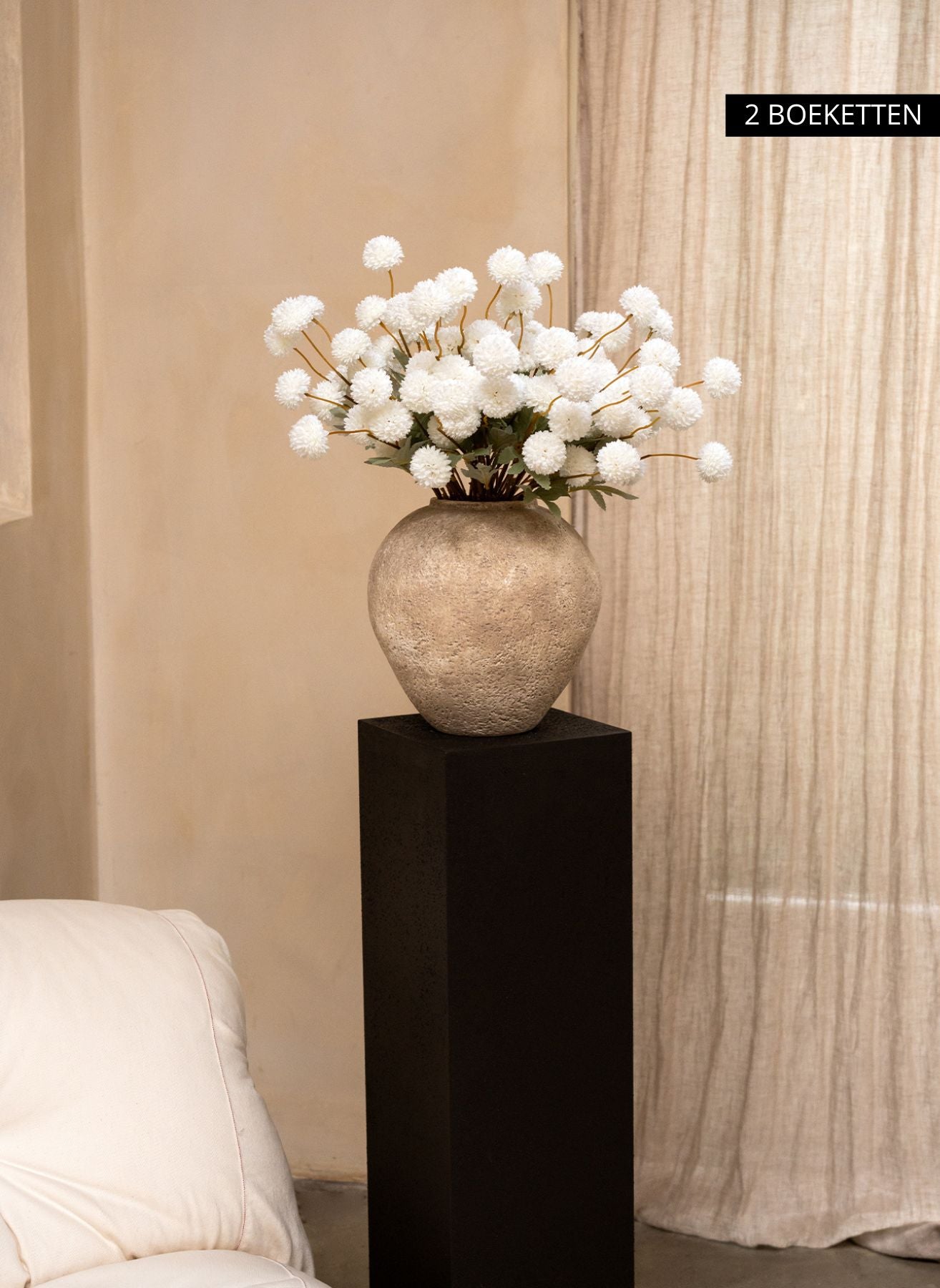 Unsere Kiku-Blumen bringen Tiefe und Farbe in dein Interieur und behalten das ganze Jahr über ihre perfekte Form – ohne Wasser, ohne Pflege.