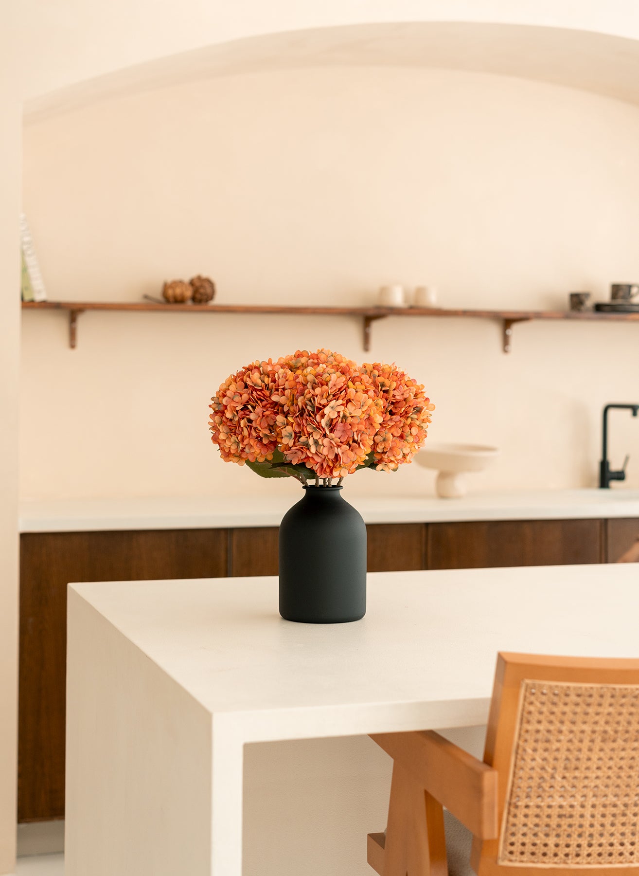 Die üppigen Blütenköpfe schaffen sofort eine ruhige, elegante Ausstrahlung und machen jeden Raum zu einem stilvollen Ganzen.