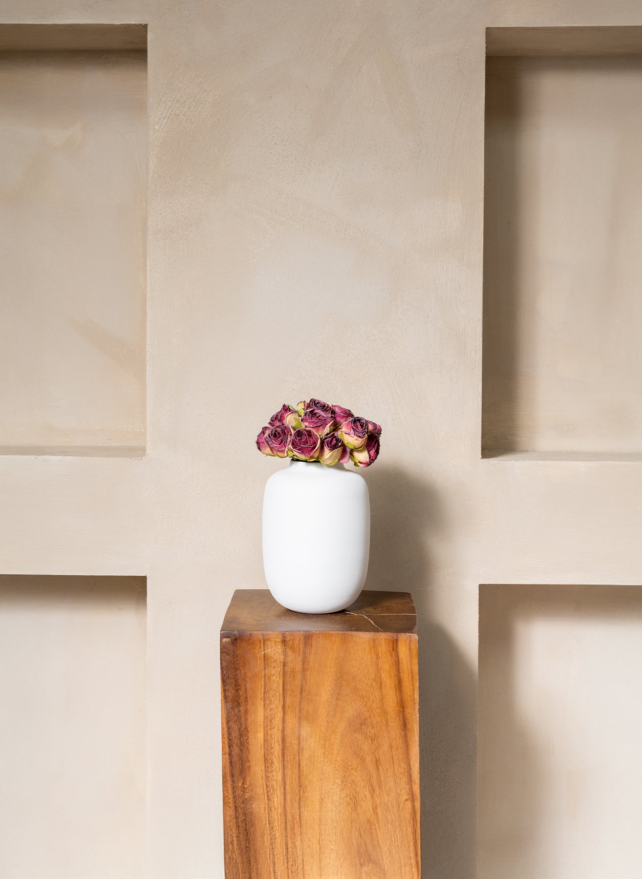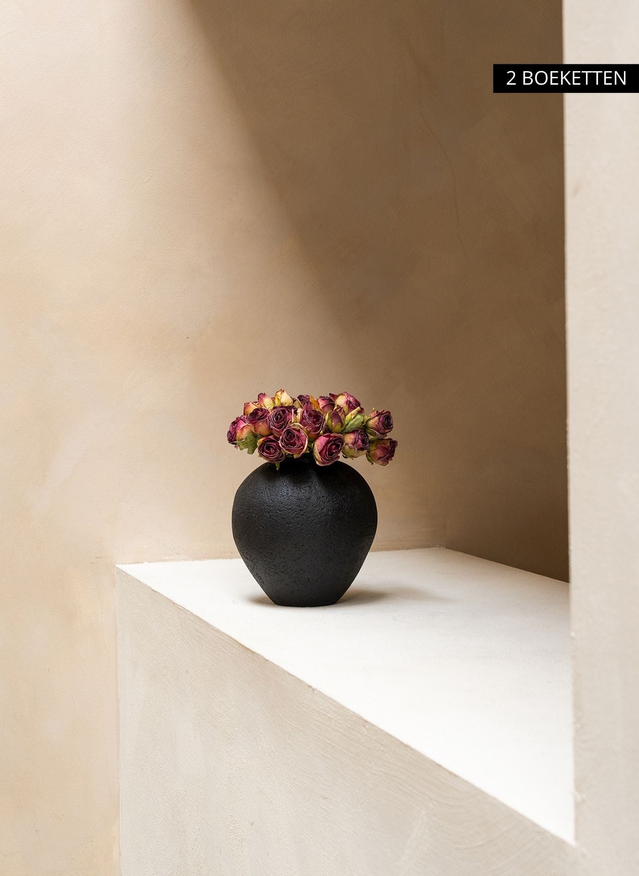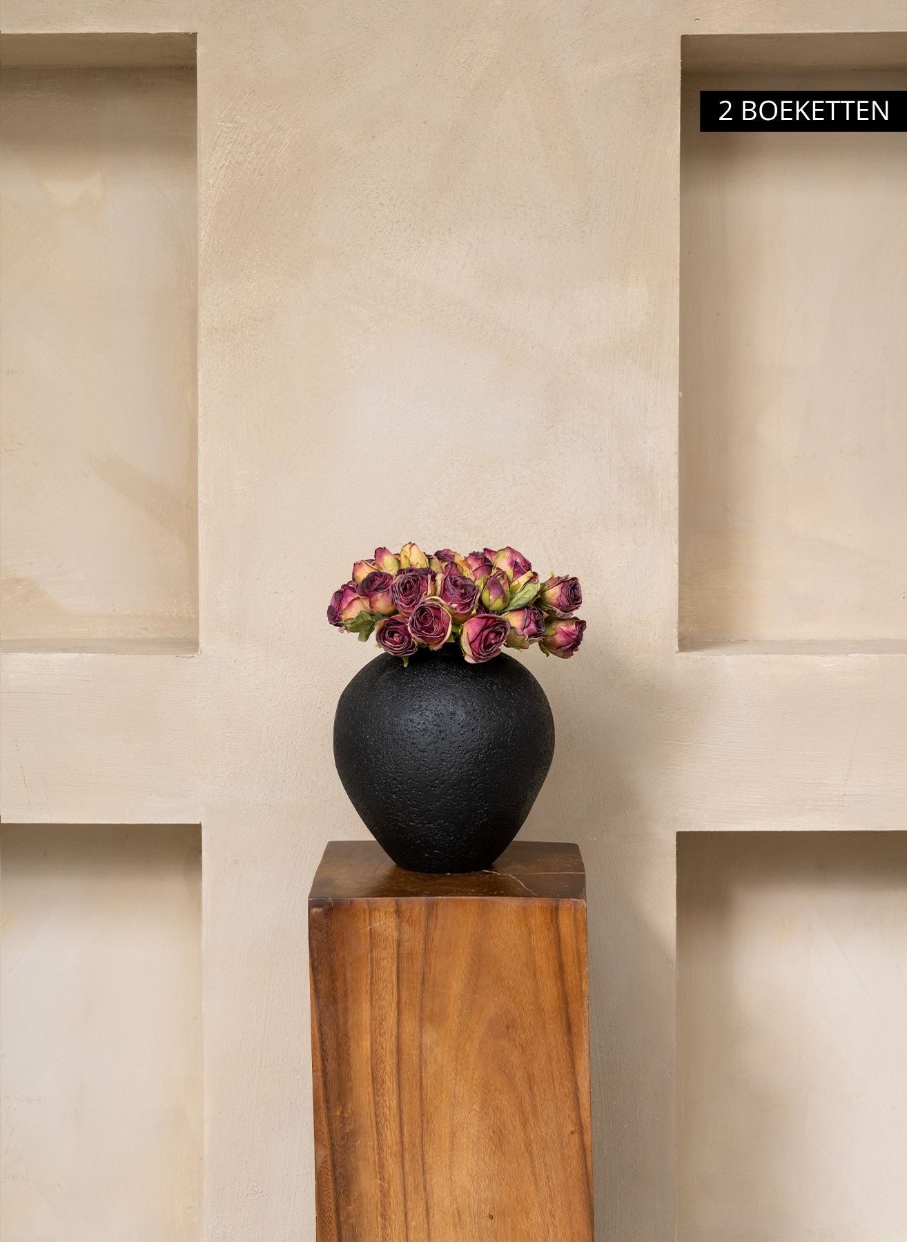 Ein Strauß enthält 20 feine Mini-Röschen in voller Blüte. Kombinieren Sie 2 Sträuße für 40 Röschen und eine reiche, üppige Ausstrahlung in Ihrem Interieur.