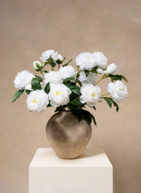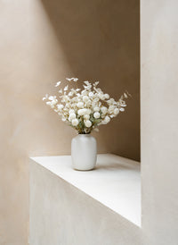 Die Arda Vase hat eine Höhe und Breite von 25 cm und eine Öffnung von 10 cm, wodurch sie ideal für mittelgroße Sträuße oder dekorative Blütenzweige ist.