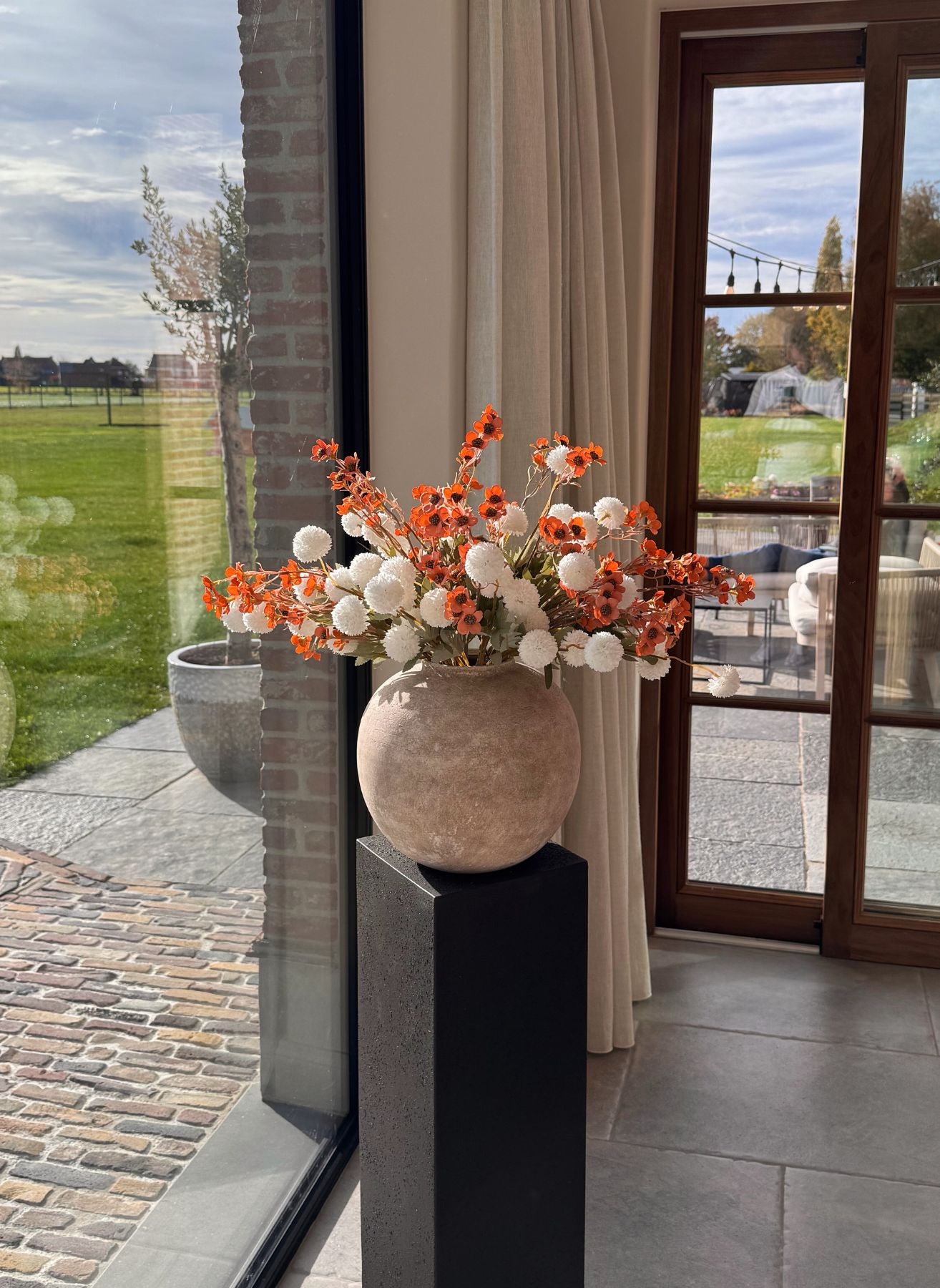 Unsere Kiku-Blumen bringen Tiefe und Farbe in dein Interieur und behalten das ganze Jahr über ihre perfekte Form – ohne Wasser, ohne Pflege.
